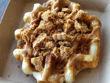 Classic Liege topped with Belgian speculoos cookie butter and crumbled Biscoff cookie.